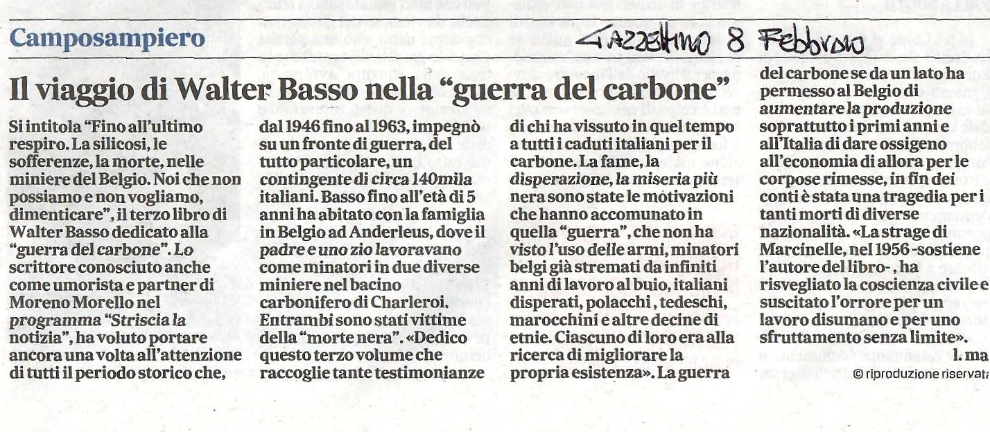 “È un lungo, faticoso processo di adattamento quello che le donne dei minatori si trovano ad affrontare nella loro odissea senza ritorno, ed è straordinario come lo affrontino da protagoniste, prendendosi in carico la gestione della famiglia in tutti gli aspetti: educativo, economico, perfino sentimentale. Le protagoniste di questo libro sono madri e mogli che troppo spesso divengono anche infermiere e vedove. Donne sospinte nell’abisso del dolore irrimediabile delle morti nella mina o in quello ugualmente irrimediabile, ma continuamente differito nel tempo, della cura dei congiunti silicotici. Non manca, infine, un’analisi sugli stili di vita delle donne italiane e di quelle belghe: senz’altro differenti, ma accomunate da un comune destino di “sorellanza” che negli anni si consolida e diviene la cifra più evidente dell’integrazione delle nostre connazionali.”